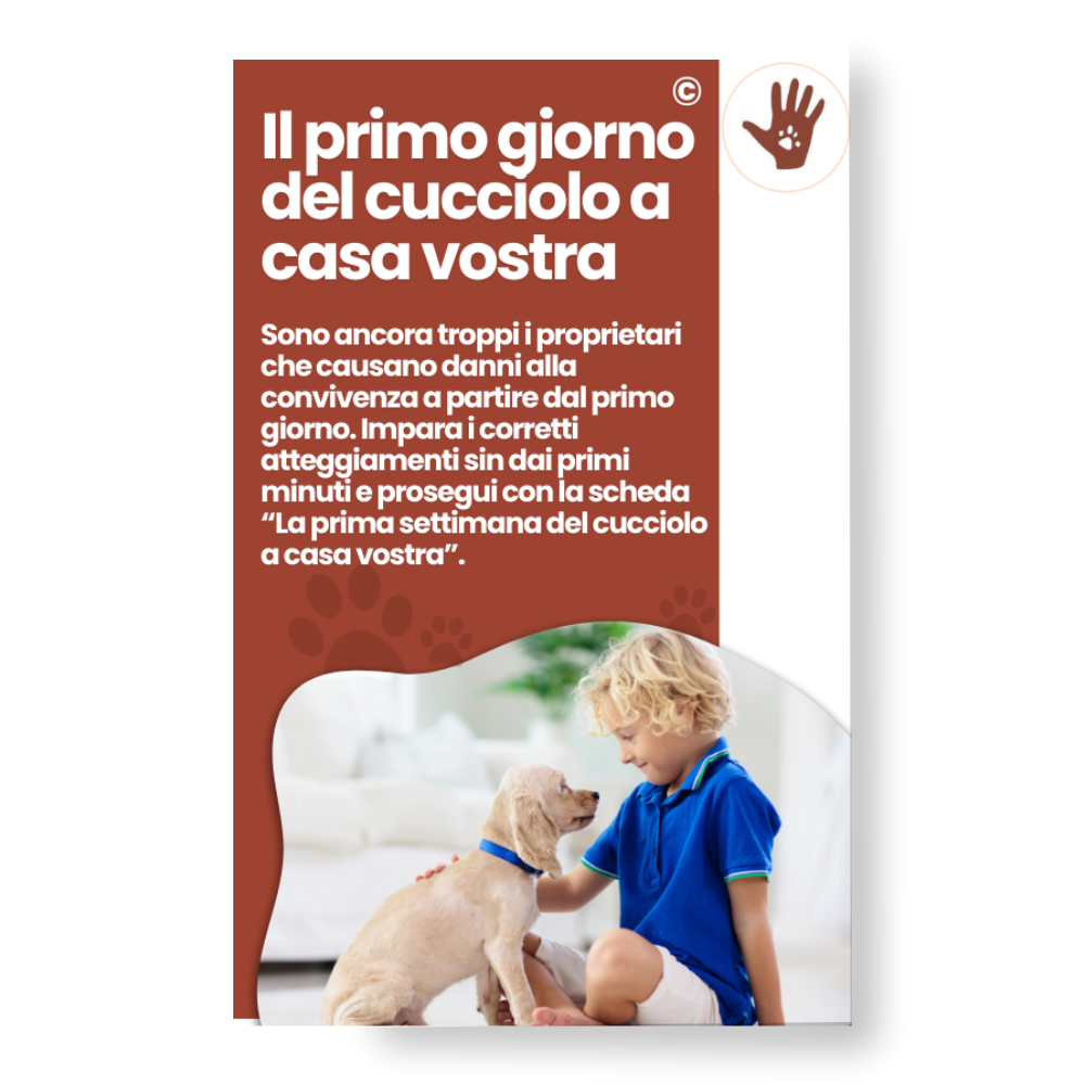 Sono ancora troppi i proprietari che causano danni alla convivenza a partire dal primo giorno. Impara i corretti atteggiamenti sin dai primi minuti e prosegui con la scheda “La prima settimana del cucciolo a casa vostra”.